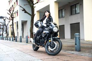 空冷シングルエンジンは最大馬力20.4ps 最大トルク19Nm カフェスタイルを引き立てるスポークホイールは前後17インチ。